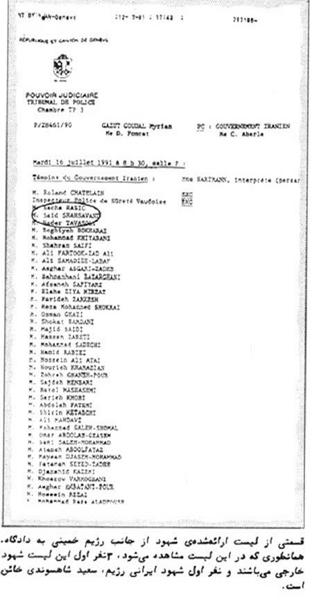 اكنون نوبت عصاكشي يك لباس شخصي ديگر ولايت (محمد جعفري) در خارجه براي شاگرد جلاد اوين است. محاكمه مسعود رجوي كه مأموريت ابلاغشده شاگرد جلاد بود، آن روي سكة ترور دكتر كاظم رجوي است. سعيد شاهسوندي يكي از شاهدان رژيم در مورد قتل دكتر رجوي در دادگاه ژنو در تير 1370 بود. در همان زمان سند رسمي دادگاه دراينباره توسط نشريه اتحاديه انجمنهای دانشجويان مسلمان خارج كشور (هواداران سازمان مجاهدين خلق ايران) منتشرشده است: (نشريه فوق العاده مرداد 1370) :