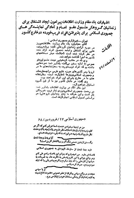 رژيم سعي ميكند توسط او، مأموران قلمزن خود را در صحنه نگهدارد و اين كار را محمد جعفري با رذالتپيشگي تمام با ترتيب دادن مصاحبههاي مهوع با اين افراد دنبال ميكند. مصاحبه هائي كه بوي توطئه و خون ميدهد.